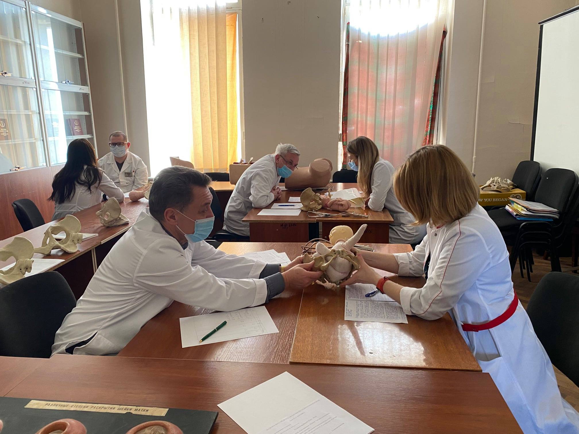 Нещодавно симуляційна кімната кафедри акушерства і гінекології №1 на основній базі кафедри, а саме: у Київському обласному перинатальному центрі перетворилися на пологову залу із надання медичної допомоги в пологах за різноманітних клінічних ситуацій.
